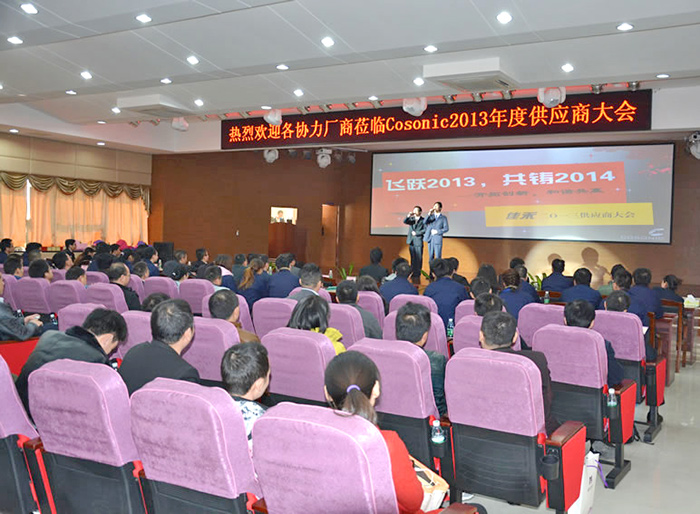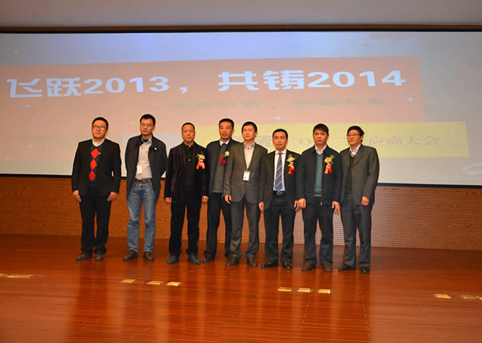 2013年12月28日以“飞跃2013,共铸2014,开拓创新,和谐共赢”为主题的供应商大会在松湖华科正式落下帷幕。best365足球官网公司总裁:严文华先生,best365足球官网公司总经理:肖伟群先生,best365足球官网公司副总经理:陈亮先生、符德全先生、刘迪先生,各分厂领导、采购人员和品质部门,以及各供应商参加了本次大会。